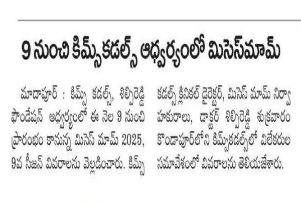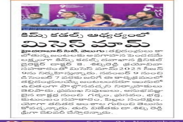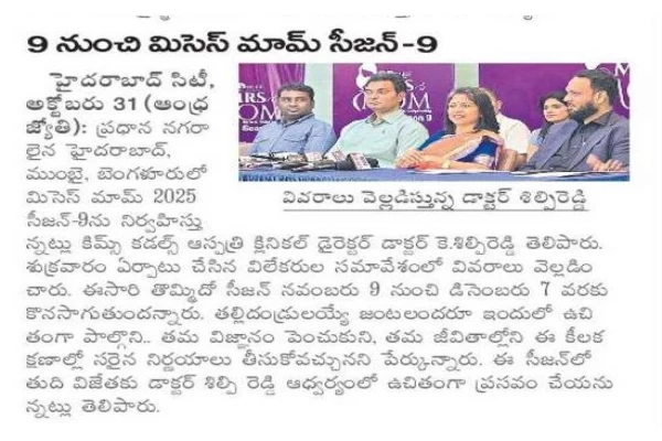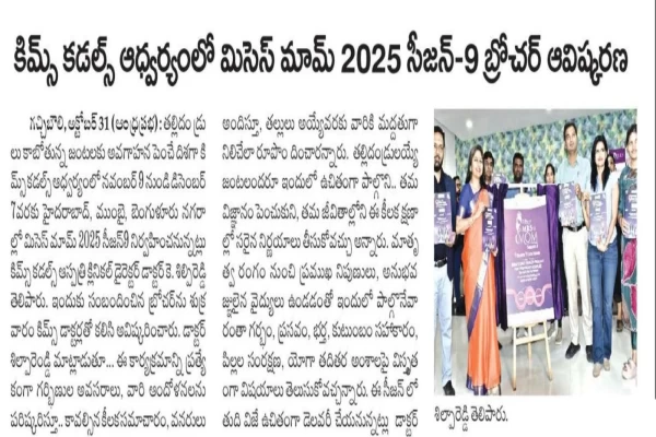 The much-awaited Mrs. Mom 2025 Season 9 has been officially launched under the leadership of KIMS Cuddles, led by Dr. K. Shilpi Reddy, Clinical Director, Obstetrics and Gynaecology at KIMS Cuddles, Kondapur.